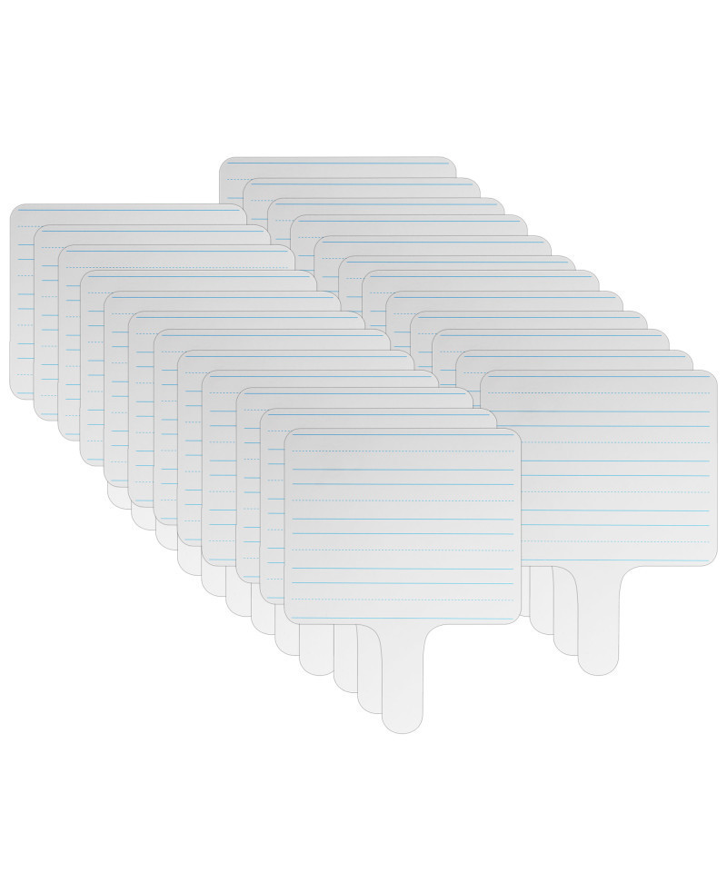 Make learning more fun with dry erase boards. 1/8" thick two-sided rectangular dry erase writing paddles are ideal for quick responses or lessons. One side features lines for handwriting practice or sentence structures, reverse side features a blank dry erase side. Includes a set of 24 individual paddles.