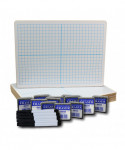 Two-sided boards feature a grid with accentuated X and Y axis on one side, and a plain white surface on the other. Reduces paper use while allowing students to master their skills! Measures 9" x 12". Set includes 12 boards, 12 erasers, and 12 pens.