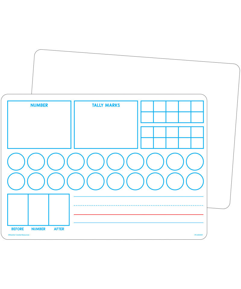- Each whiteboard is double-sided, with the front side tailored for building number sense with dedicated spaces for ten-frames, tally marks, written numbers, and more, while the blank reverse provides room for additional practice or creative activities.