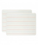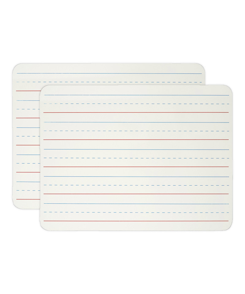 This versatile 9" x 12" dual-sided dry erase lap board is perfect for a wide range of classroom activities. One side features pre-printed lines ideal for practicing handwriting, penmanship, and sentence structure, while the blank side is great for games, math lessons, drawing, or quick notes. Made with a durable masonite backing and a bright white melamine surface, this board offers long-lasting use and excellent visibility. Designed to work with all dry erase markers, it's also an eco-friendly alternative to paper—just write, wipe, and reuse. Whether you're a student or teacher, this board is a practical tool for any learning environment. Sold as a pack of 2 dry erase boards.