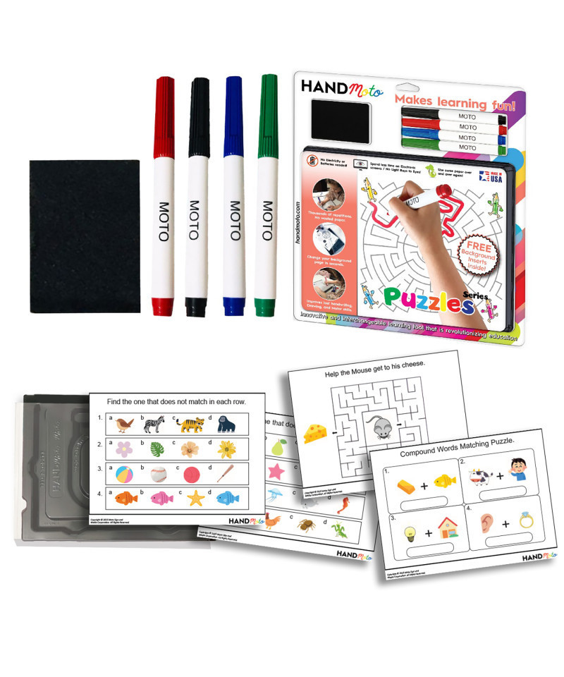 Unlock your child's potential with the HandMoto® Dry-Erase Learning Board - Puzzles Series, a hands-on, reusable educational tool designed for children ages 2 to 5. This innovative puzzle board encourages logical thinking, problem-solving, and pattern recognition through engaging, game-based activities. With vibrant dry-erase activity sheets, felt eraser pad, and colorful pens, kids can explore a wide range of puzzles repeatedly, building perseverance, focus, and self-confidence while staying screen-free. The portable and mess-free design allows for use at home, in classrooms, or on the go, supporting collaborative learning and family bonding. Perfect for nurturing critical thinking, creativity, and social skills, the HandMoto Puzzle Board transforms learning into a fun, interactive, and educational experience.