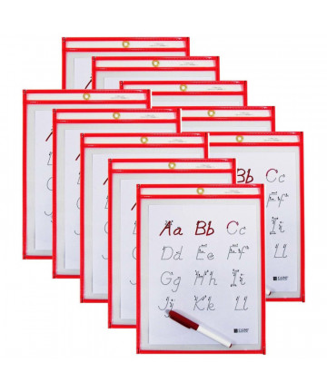 Allow children to be able to practice new skills almost anywhere with C-Line's latest study tool. Create an instant write-on workspace during classroom circle time by utilizing the Portable Dry Erase Pocket. Students can benefit from using this dry erase pocket study aid, while being able to use this tool away from their desk due to the heavy-duty extra durable, rigid polypropylene material that the holder is made from. The vinyl pocket helps protect worksheets inside and provides a dry erase surface to allow kids to practice their math and handwriting skills. For 8-1/2 x 11 size documents. Features a write-on surface above the pocket for identification purposes and cut-out at the top of the holder that acts like a handle, making it easier for students to transport the study tool. Sold individually in assorted primary colors: red, blue, yellow, green (no color choice).