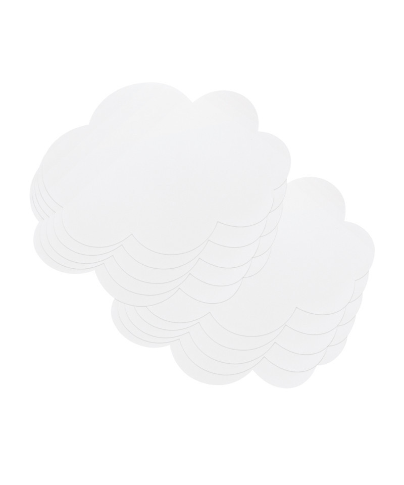 Pacon® Dry Erase Shapes are perfect for single or group classroom use for math, writing, word practice, games and more! These shapes have an extremely high quality dry erase surface, a thick durable foam inner layer for tear-resistance, and a unique tacky backing that make them repositionable and reusable hundreds of times. These removable shapes stick to almost any clean, dry surface, including whiteboards, desks, doors, windows, cabinets, mirrors, lightly textured walls, floors, plexiglass, appliances and much more! When they get dirty, just wash them off with water, and they will stick just like new! Also great to use around the home and office. Don't forget to remove the thin, protective layer off of each shape before use! Each 10 count package includes 10 white Clouds that are 7" high x 10" wide.