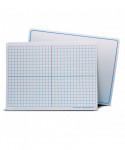 Two-sided, XY Axis Dry Erase Learning Mats are great for teaching and practicing mathematics fundamentals. The bright white sheets have bold blue lines separating the mat into quadrants, each 14 squares by 10 squares. Total grid is 28 squares by 20 squares. Individual squares measure 3/8" x 3/8". The back side is plain white dry erase with a blue border. The mats feature a high-quality, non-ghosting write-and-wipe surface with smooth, rounded edges and corners. Each sheet measures 9" x 12". Each pack includes 48 individual mats.