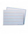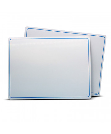 Magnetic, Two-Sided Red & Blue Ruled Dry Erase Learning Mats are great for teaching and practicing fundamentals at the early learner stage. The bright white sheets contain 5 sets of blue headlines and broken mid-lines plus, a red baseline format. Each line set measures 1 1/8" with 3/8" of blank descender space between sets. The back side is plain white, dry erase with a blue border. Both sides of the learning mats are magnetic receptive allowing for use with magnetic manipulatives. The mats feature a high-quality, non-ghosting write-and-wipe surface with smooth, rounded edges and corners. Each sheet measures 9" x 12". Each pack includes 48 individual mats.