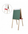 Crestline Products Child's Deluxe Double Easel, is designed for children under the age of 6, this easel features a lead-free chalkboard on one side, a white dry-erase board on the reverse, and a 15" x 100' paper roll on the top. Side brackets are finger friendly and fold easily for storage. One durable tray is included for storing paint, markers, and supplies. Solid wood construction. Measures 44" T x 19" W.