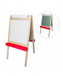 This deluxe easel features a magnetic dry-erase board on one side and a green chalkboard on the reverse as well as a top mounted 18" x 100' paper roll. Double hinged for stability at the top, two rugged trays and sturdy steel leg braces. Measures 48" T x 24" W.