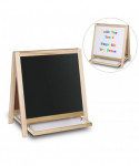 Magnetic Table Top Easel is designed for table top use. This framed wooden easel features a white magnetic dry-erase surface on one side and a black chalkboard on the reverse. Large center tray provides useful storage space. Great for use in the classroom, a daycare, and the home. Perfect size for small group activities. Easel measures 19.5"H x 18"W.