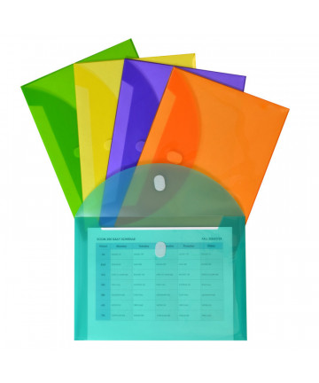 Side load polypropylene envelopes provide safe storage for your documents. Made from acid-free polypropylene, with string closure. For 11 x 8 1/2 document storage. Sold as a pack of 24 in assorted Tropic Tones: Seaside Blue, Sunny Yellow, Seafoam Green, Sunset Red, Sandy Gray and Clear (no color choice).