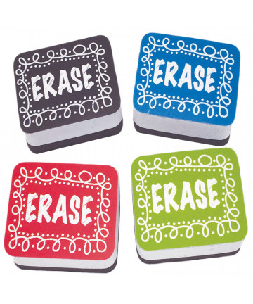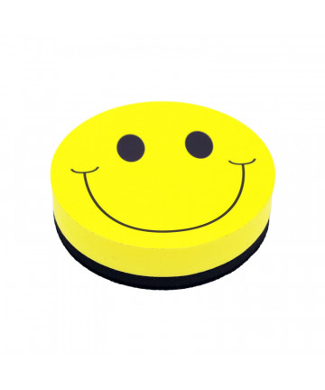 Fun and colorful design to brighten up your magnetic whiteboard. Easy to grip and hold for adults and children. Use with dry erase markers. Eraser is made from a durable foam with a black felt erasing surface. Built in magnet helps to easily stick to magnetic whiteboards and other magnetic surfaces. Measures 3.75".