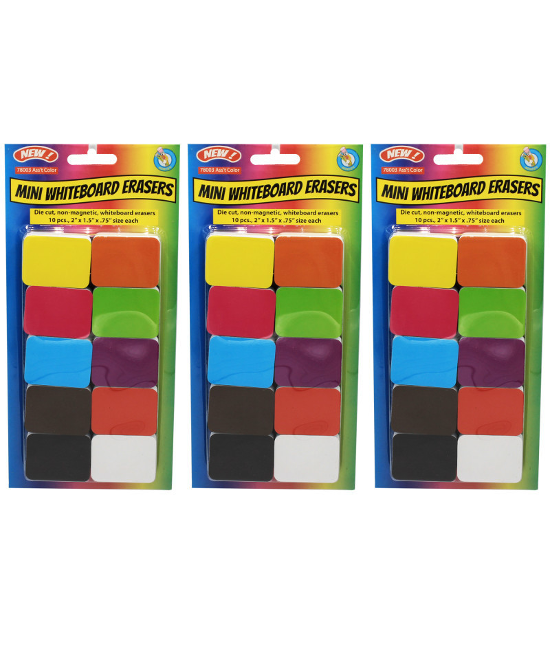 Ashley Productions® Non-Magnetic Mini Whiteboard Erasers, Assorted, 10 Per Pack, 3 Packs