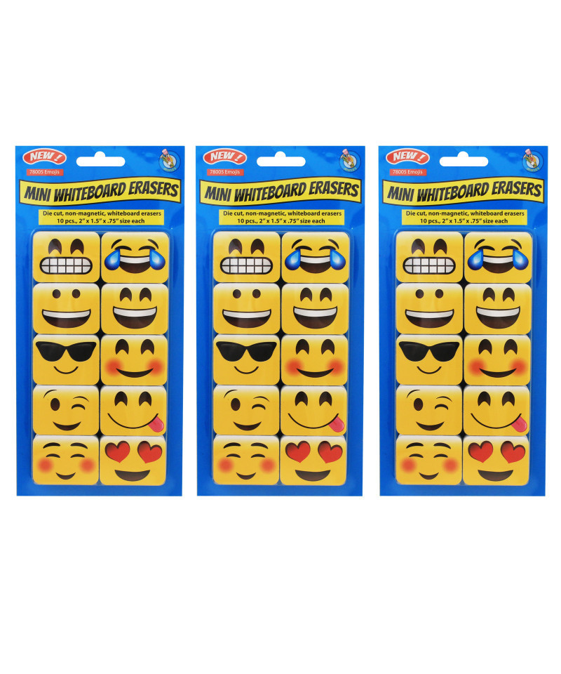Ashley Productions® Non-Magnetic Mini Whiteboard Erasers, Emotions Icons, 10 Per Pack, 3 Packs
