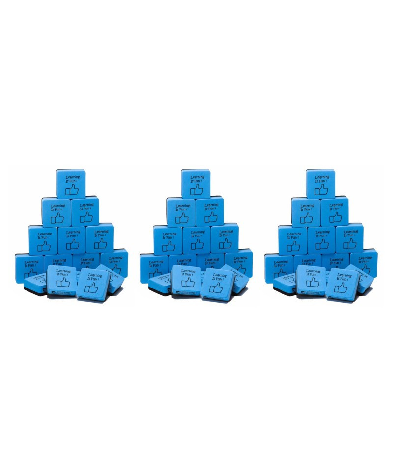 Multi-purpose eraser removes markings quickly and cleanly. Ideal for use on all dry erase surfaces and for standard chalkboards. Cleans with soap and water for long life. Measures 2" x 2" x 0.75". Each pack includes 15 erasers. Sold as 3 packs for a total of 45 erasers.
