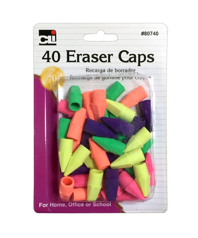 For home, office, or school, these caps have a wedge shaped design. Easy and economical way to replace worn out pencil erasers. Each pack includes 40 erasers in assorted colors.