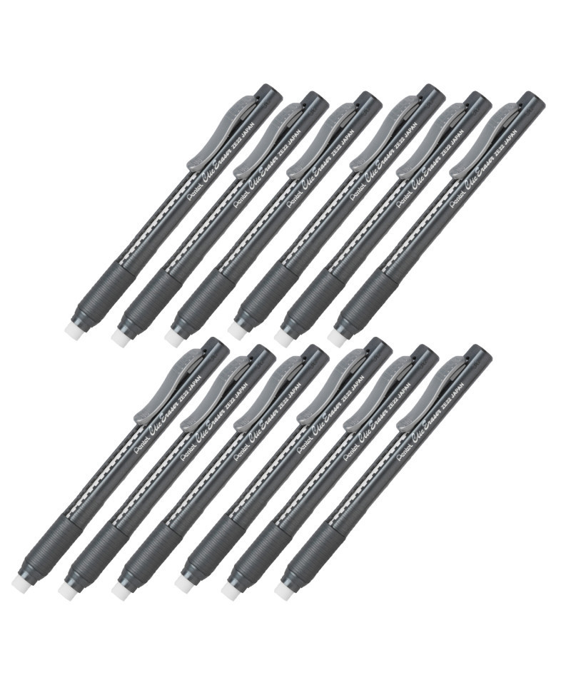 Premium latex-free white eraser removes lead easily. Won't scuff, smear or tear your paper. Pocket clip advances/retracts this long-lasting eraser with a "click". Maximum comfort and control with the latex-free grip. Sold as a pack of 12 erasers.
