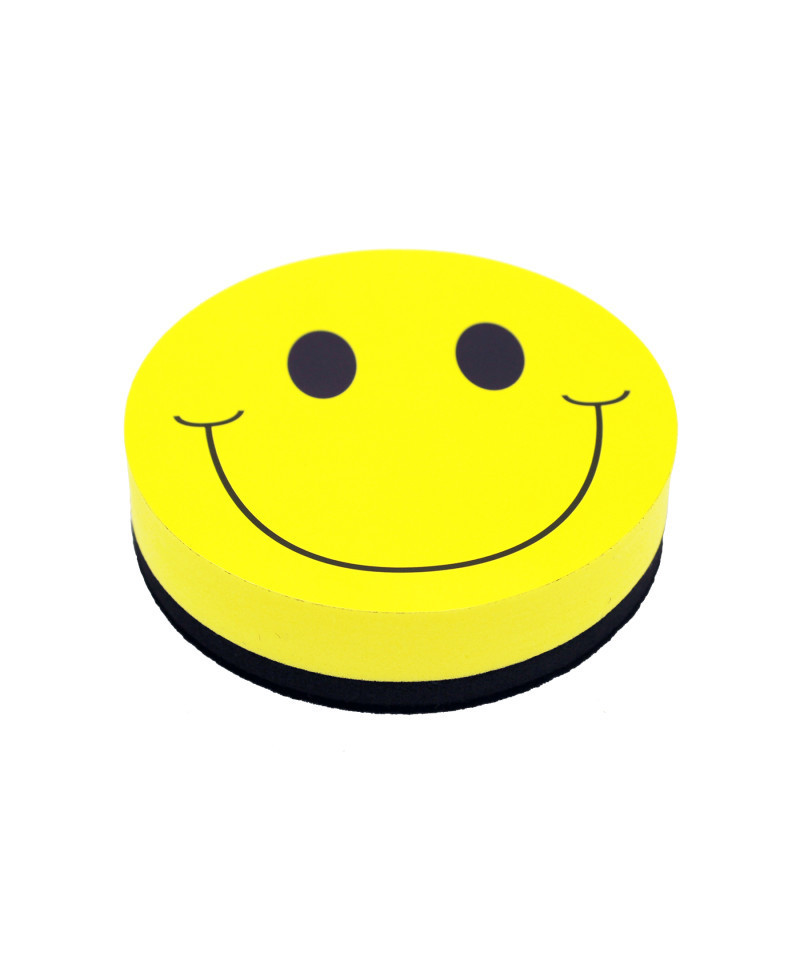 Fun and colorful design to brighten up your magnetic whiteboard. Easy to grip and hold for adults and children. Use with dry erase markers. Eraser is made from a durable foam with a black felt erasing surface. Built in magnet helps to easily stick to magnetic whiteboards and other magnetic surfaces. Measures approximately 3-3/4".