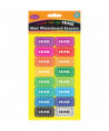 Fun and colorful design to brighten up your magnetic whiteboard. Easy to grip and hold for adults and children. Use with dry erase markers. Eraser is made from a durable foam with a black felt erasing surface. Makes a great incentive item. Each pack includes 16 erasers.
