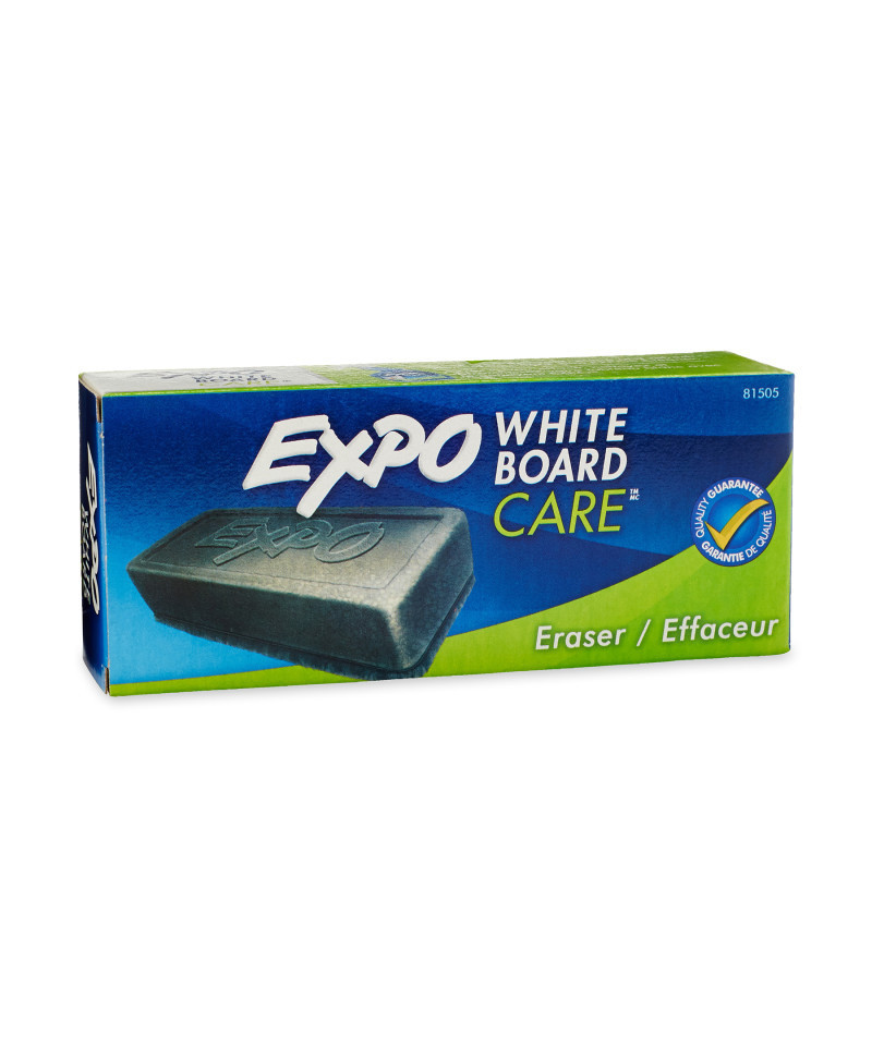 - EXPO Block Eraser is made of soft pile, measuring 5-1/8" x 1-1/2", and can be cleaned with soap and water