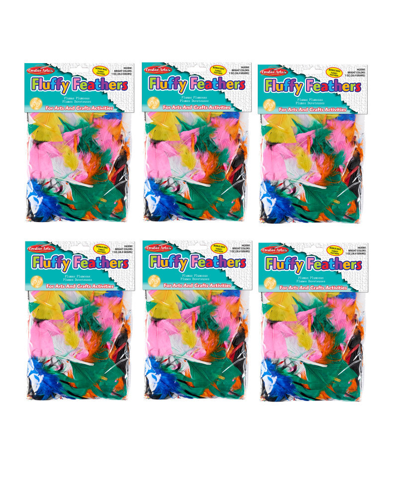Natural turkey feathers featuring non-toxic colors bring life to masks, collages and all your arts and crafts projects. Exciting color assortments available in an 1 ounce bag. Bring excitement to all of your arts and craft projects with our feathers. Vibrant colored feathers. Each pack includes 1 oz of feathers. Sold as 6 packs for a total of 6 oz. of feathers.