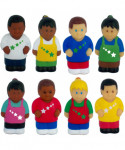 Set of 8 chunky 3" multicultural all-star children figures are soft and friendly. The characters help children learn about ethnicity and diversity through creative play. Develops hand and eye coordination. For ages 1+. Great for home, day care and preschool use.