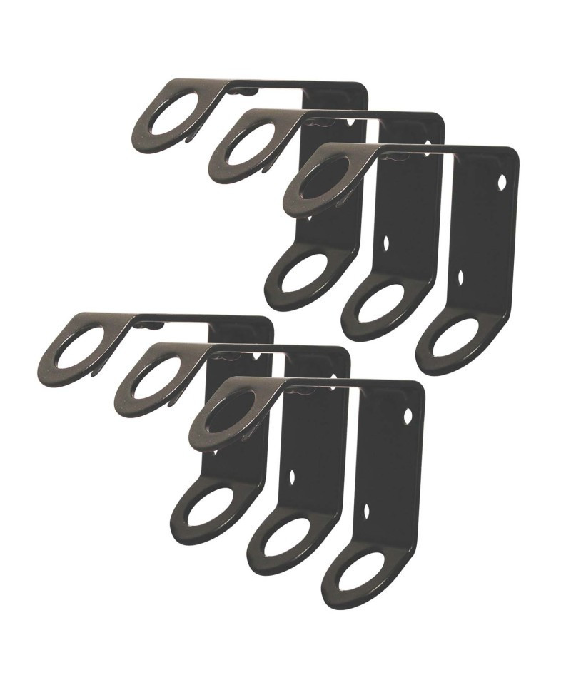 Steel stamped bracket with unique spring-clip lock and black enamel finish, holds flags firmly in place. Fits staff sizes 1/4" to 5/8" inch in diameter. Sold as a pack of 6 brackets.