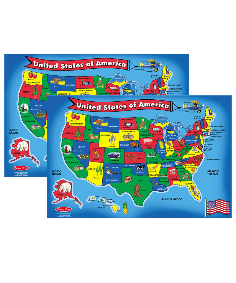 Geography comes to life with this cardboard floor puzzle, featuring 51 pieces cut to the shape of the state or region. 2' x 3' when assembled, the extra-thick pieces feature an Easy-Clean surface to keep them looking like new. Kids will have fun learning the states on this colorful, informative map puzzle. Sold as a pack of 2 identical puzzles.