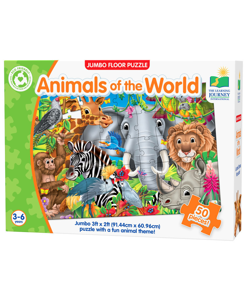 The Jumbo Floor Puzzle series helps to develop your child's hand-eye coordination as they play. There are 50 large puzzle pieces that are easy to grasp and move, so your child stays engaged. This puzzle is also wildlife-themed with beautiful, detailed illustrations to teach your child about animals around the world. The puzzle measures a huge 3' x 2'! Ages 3+ years.