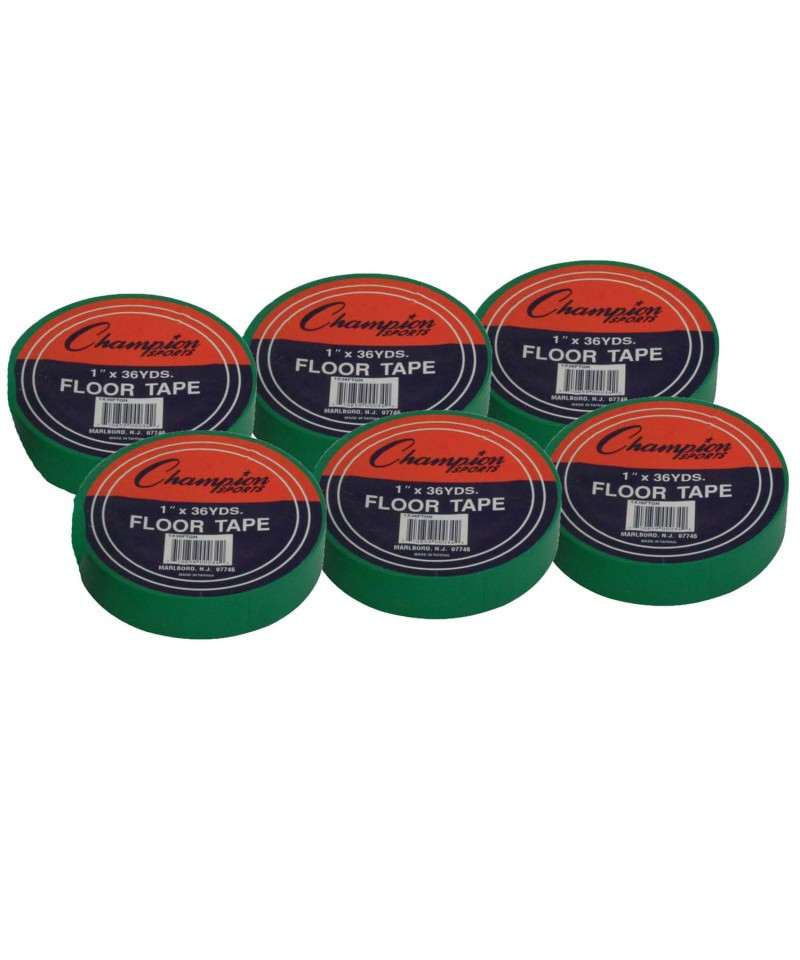 Champion Sports Vinyl Floor Marking Tape is perfect for marking your gym floors, courts, or any hard smooth surface. Made of tough vinyl, this floor tape comes off clean and won't scuff your floors, but is strong enough to hold up to foot traffic and equipment. 1"x 36yd. Vinyl. Green. Sold as 6 rolls of tape.