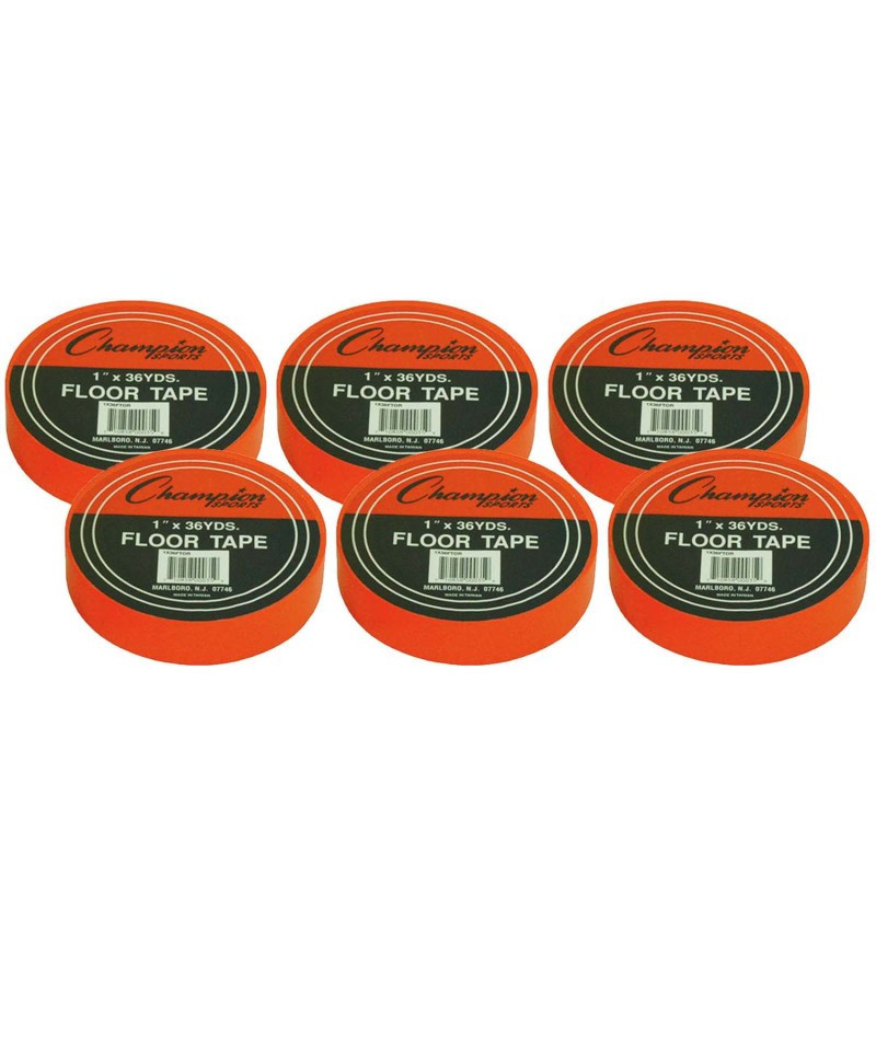 Champion Sports Vinyl Floor Marking Tape is perfect for marking your gym floors, courts, or any hard smooth surface. Made of tough vinyl, this floor tape comes off clean and won't scuff your floors, but is strong enough to hold up to foot traffic and equipment. 1" x 36yd. Vinyl. Orange. Sold as 6 rolls of tape.
