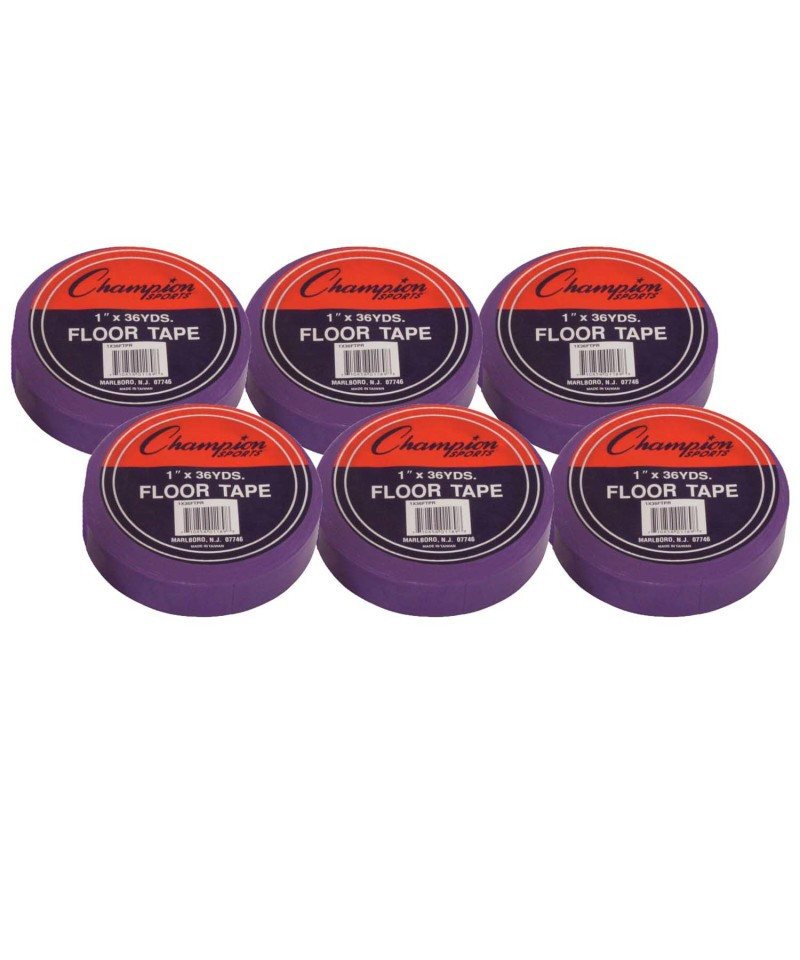 Champion Sports Vinyl Floor Marking Tape is perfect for marking your gym floors, courts, or any hard smooth surface. Made of tough vinyl, this floor tape comes off clean and won't scuff your floors, but is strong enough to hold up to foot traffic and equipment. 1" x 36yd. Vinyl. Purple. Sold as 6 rolls of tape.