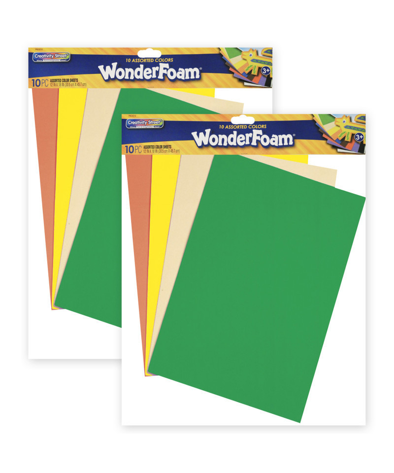 Our large 12" x 18" WonderFoam® sheets are easy to cut and accept many types of glue, paints and markers. Use for cutting out your own shapes or as the base for other arts and crafts projects. Each pack includes 10 sheets in 10 colors. Sold as 2 packs for a total of 20 sheets.