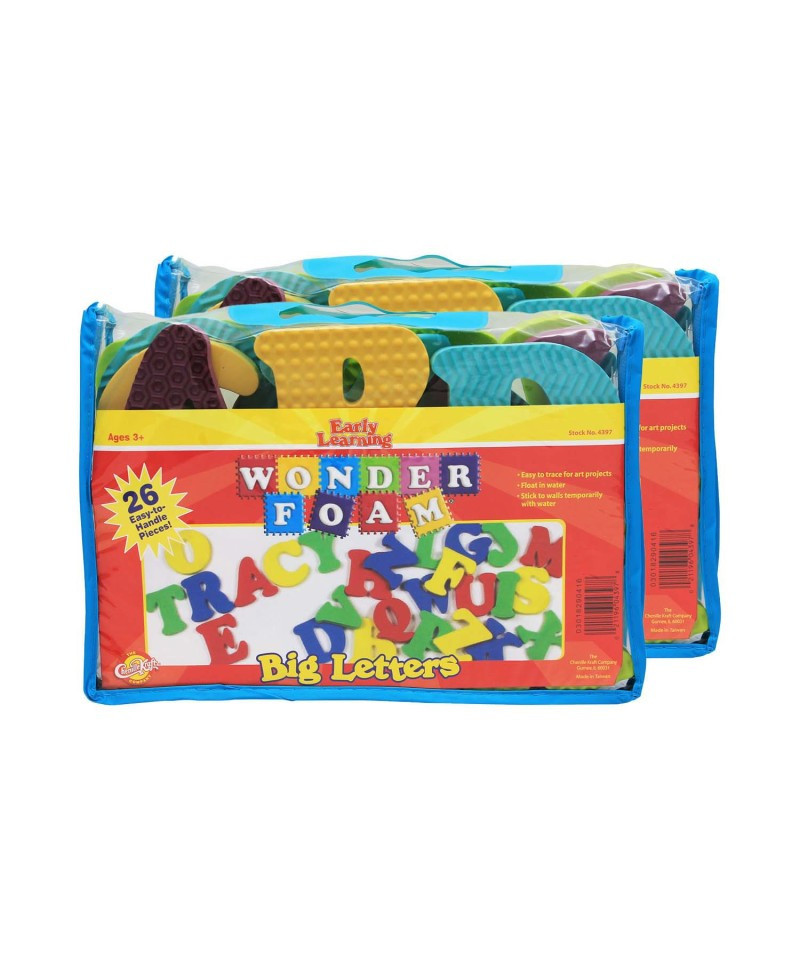 It's more fun than ever learning the alphabet with this set of WonderFoam® Big Letters. Includes all 26 letters in the alphabet. Jumbo foam pieces (4" x 4") are easy to trace for art projects and easy-to-handle for little hands. Comes in a convenient plastic container. Sold as 2 sets of letters.