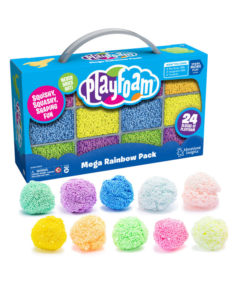There's no end to the sensory stimulation and creativity with the Playfoam Mega Pack! Preschoolers can squish, squash, squeeze, and sculpt this super-satisfying, kid-safe, non-toxic sensory compound, then smash it down and start all over again. Non-toxic Playfoam never dries out, so the creativity never ends. Plus, Playfoam bricks blend beautifully, so kids can create their very own custom Playfoam colors. Set includes Classic Playfoam, Glow-in-the-Dark Playfoam, and Sparkle Playfoam for a totally tactile Playfoam party!