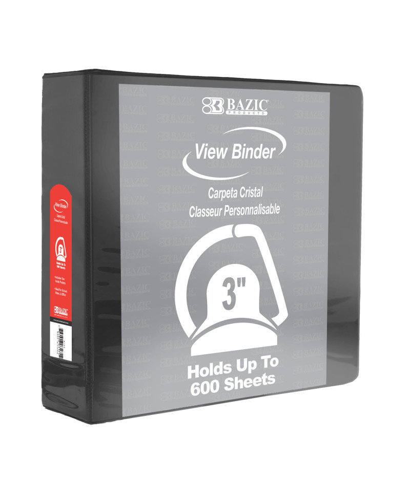 This 3 inch hard cover binder features a clear view on the front, back and side so you can customize! Each binder can be easily identified when a piece of paper with artwork or title is inserted from the opening on the top. This binder has 3 metal rings that are "D" shape, attached inside on the back of the binder, so that you can fit more documents.