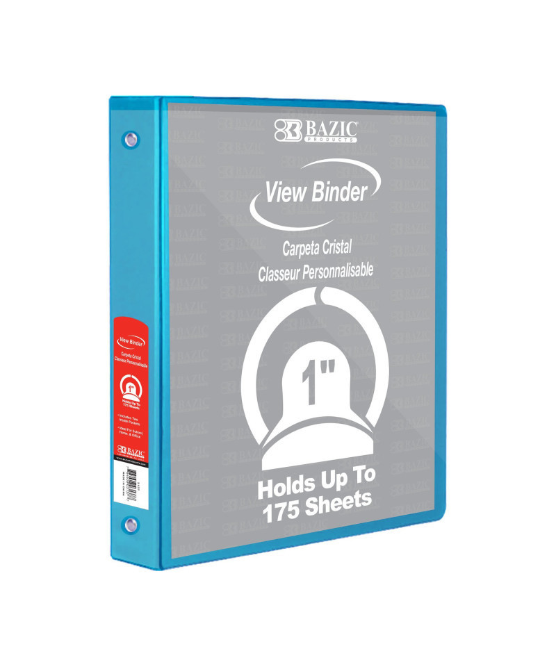 BAZIC Products® 3-Ring View Binder with 2 Pockets, 1", Cyan