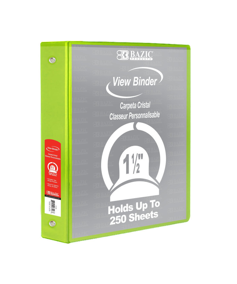 BAZIC Products® 3-Ring View Binder with 2 Pockets, 1.5", Lime Green