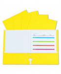 Two-pocket paper portfolios/folders with 3-hole punch hold papers and resist tearing. Laminated, high-gloss finish catches your eye. Vibrant colors let you organize by subject, project and more! Great for school, home or office. Folders feature 3-hole punch with 2 business card slots. Without prongs. For 8.5" x 11" document storage. Box of 25. Yellow.