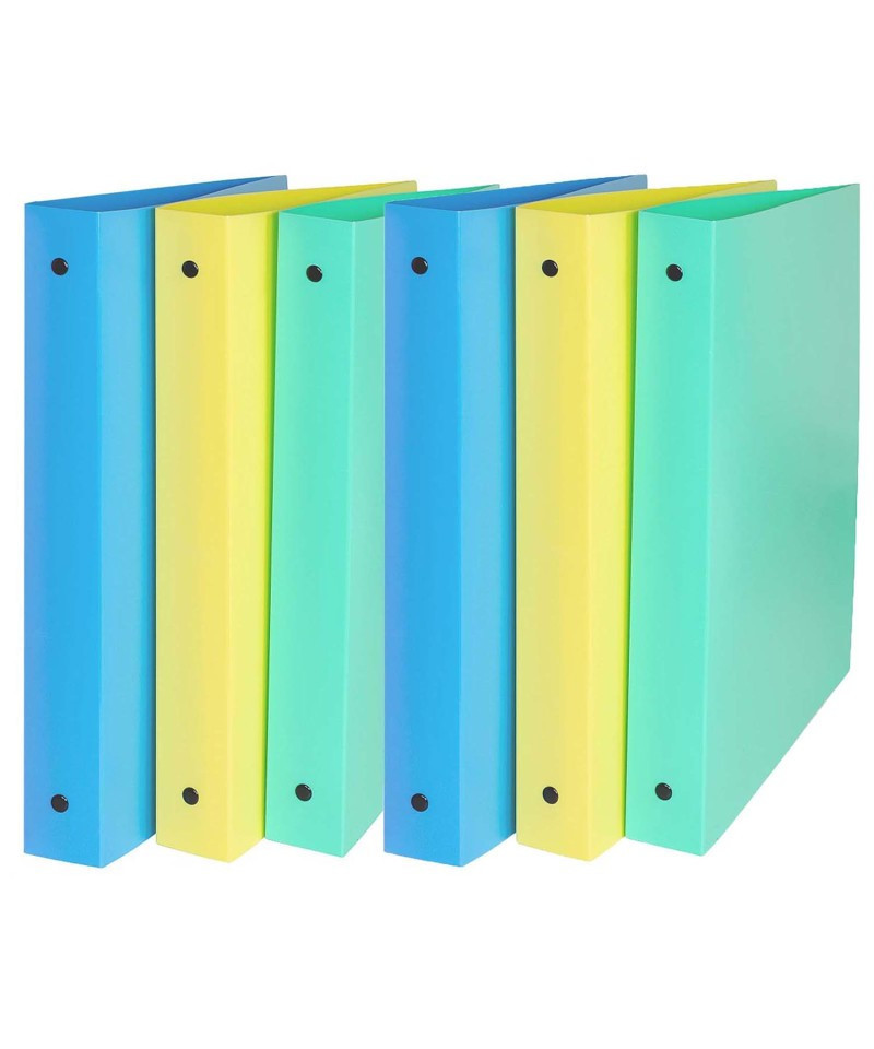 Durable polypropylene binders feature large interior pocket on the back cover for extra storage. Acid-free material protects documents and photos by eliminating the risk of photocopy transfer. 1 inch capacity. Assorted Tropic Tones colors include Seaside Blue, Sunny Yellow, Seafoam Green, and Sunset Red (no color choice). Sold as a pack of 6.