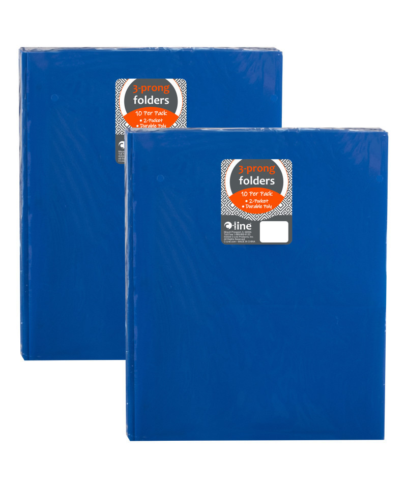 C-Line® Two-Pocket Heavyweight Poly Portfolio Folder with Prongs, Blue, 10 Per Pack, 2 Packs