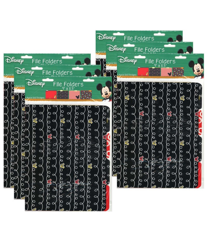 Eureka School file folders offer unique and creative solutions for classroom organization. Mickey Color Pop! File Folders include 4 file folders (1 each of 4 different designs). Each file folder measures approximately 9" x 11.5". Sold as a set of 6 packs, 24 file folders total.