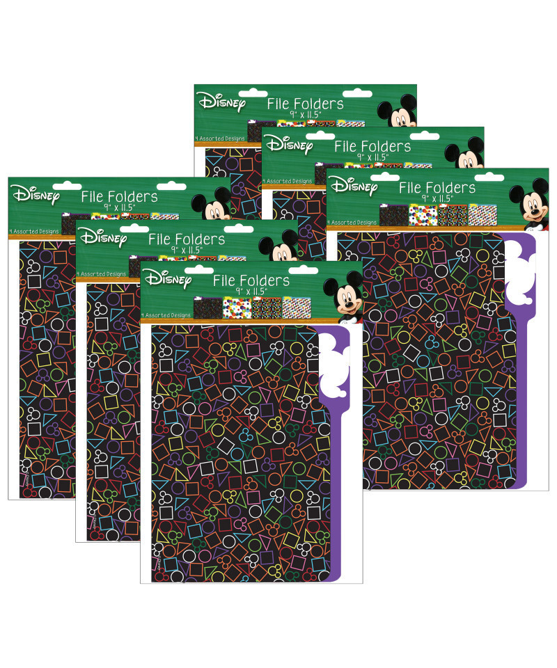 Geo Mickey File Folders file folders offer unique and creative solutions for classroom organization. Each file folder measures approximately 9" x 11.5". Each pack include 4 file folders (1 each of 4 different designs). Sold as 6 packs for a total of 24 file folders.