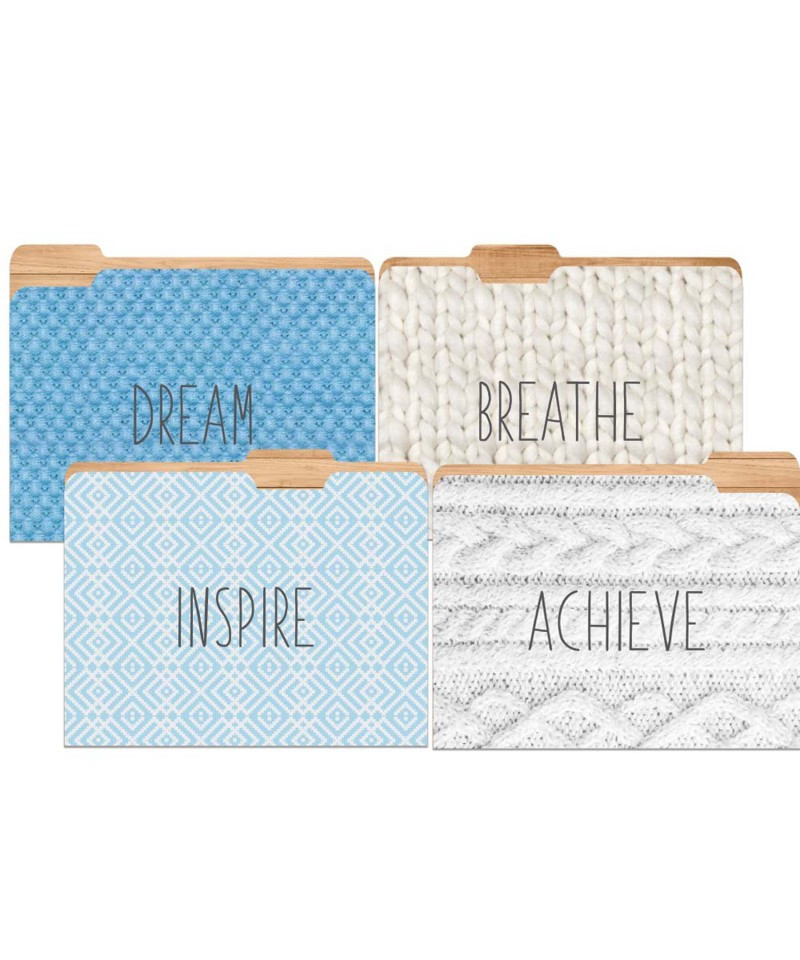 File Folders in complementing designs offer unique and creative solutions for classroom organization. Features four complementing patterns. Individual folder measures 9" x 11 1/2". Reusable. Each pack includes 4 folders.