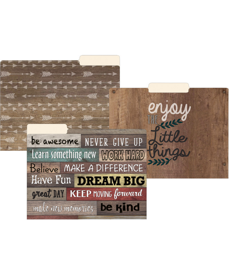 Organize your paper work at school or home with these rustic farmhouse chic file folders. File folders measure 11-3/4" x 9-1/2". Each pack includes 12 folders: 4 each of 3 designs.