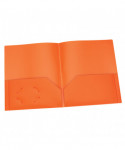 Colorful, flexible and durable for multiple uses. Lightweight poly resists wear and tear to help keep your work safe. Twin-pocket folders hold up to 50 sheets in each pocket. Interior die-cut business card holder keeps contact info close at hand. Letter size; Orange; 25 per box.