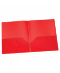 Colorful, flexible and durable for multiple uses. Lightweight poly resists wear and tear to help keep your work safe. Twin-pocket folders hold up to 50 sheets in each pocket. Interior die-cut business card holder keeps contact info close at hand. Letter size; Red; 25 per box.