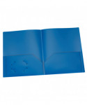 Colorful, flexible and durable for multiple uses. Lightweight poly resists wear and tear to help keep your work safe. Twin-pocket folders hold up to 50 sheets in each pocket. Interior die-cut business card holder keeps contact info close at hand. Letter size; Blue; 25 per box.