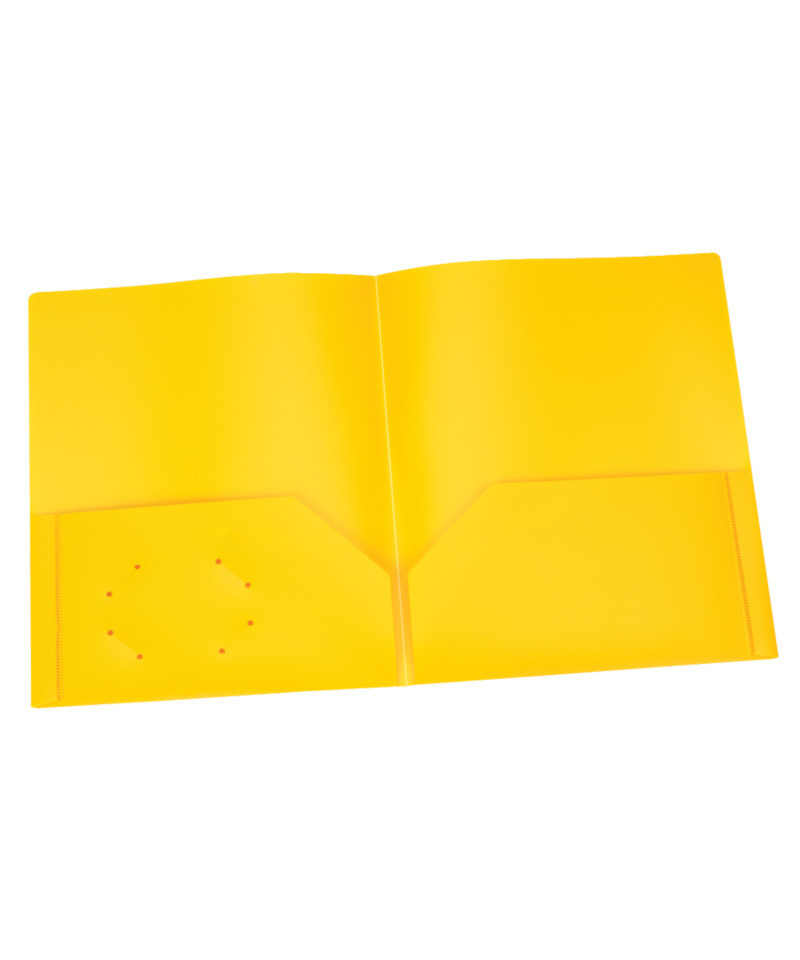 Colorful, flexible and durable for multiple uses. Lightweight poly resists wear and tear to help keep your work safe. Twin-pocket folders hold up to 50 sheets in each pocket. Interior die-cut business card holder keeps contact info close at hand. Letter size; Yellow; 25 per box.