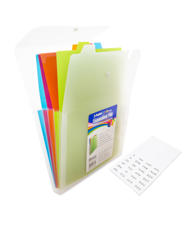 - COLOR TABS. Comes with rainbow colored pockets to neatly divide documents and papers to quickly find later. Also includes small blank, A to Z, and monthly adhesive tab labels to help classify by subject. Makes organizing simple and fun.