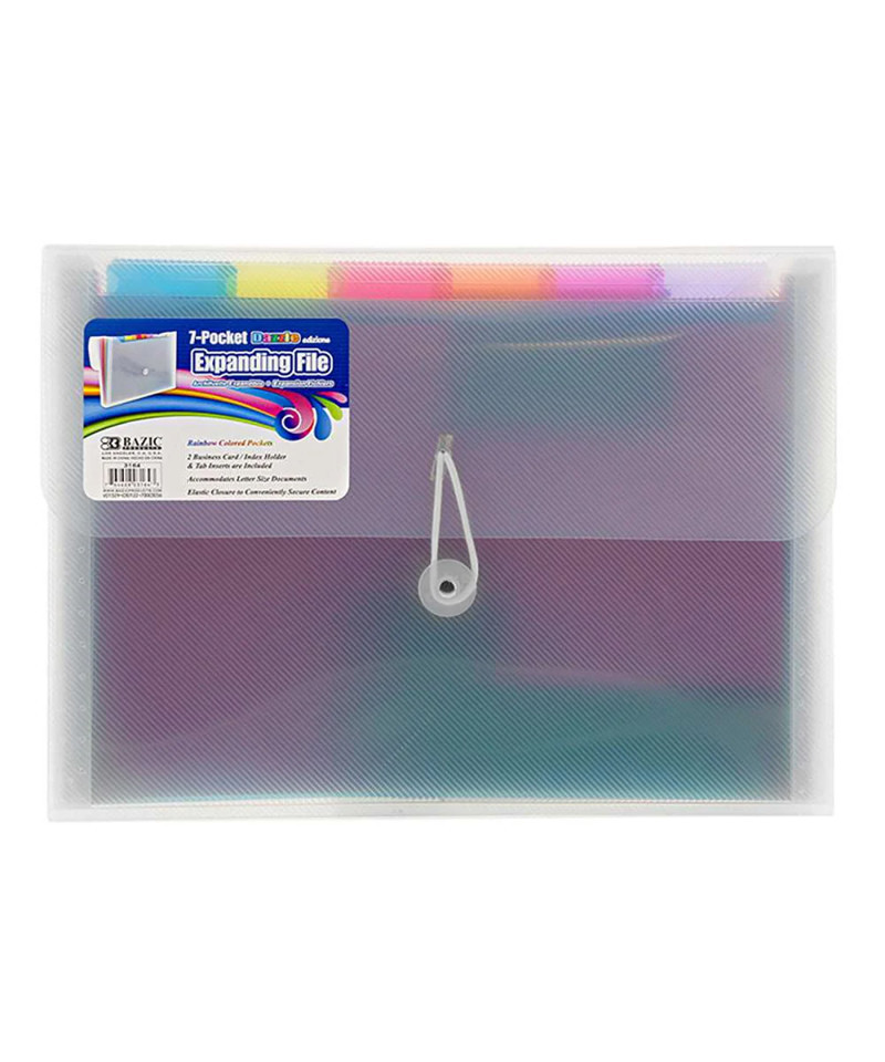 - FILE ORGANIZER. Made from high quality Polypropylene (PP) Plastic material. Safe & non-Toxic. Measure: 13" x 9.4" x 1.7". Expandable with 7 pockets. Fits both A4 size and Letter Size.