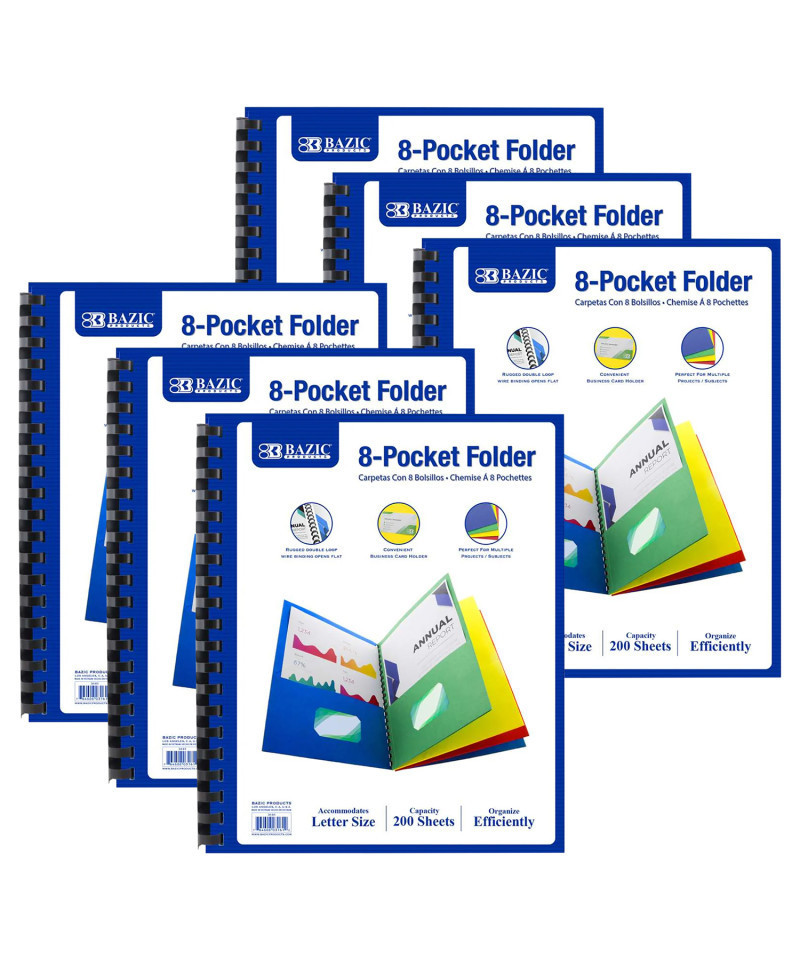 - FILE ORGANIZER. Pack of six 8-pocket portfolios feature assorted color pockets. An extremely useful product for presentations, organizing or arranging papers, files or other similar items.